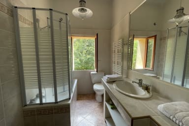 - Chambre 1 : lit en 160 avec salle d'eau privative (baignoire douche et w.c)